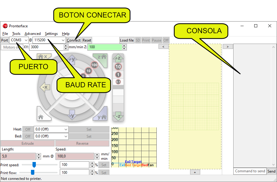 4 – Ejecutamos Pronterface. Este programa no necesita instalación, es portable.